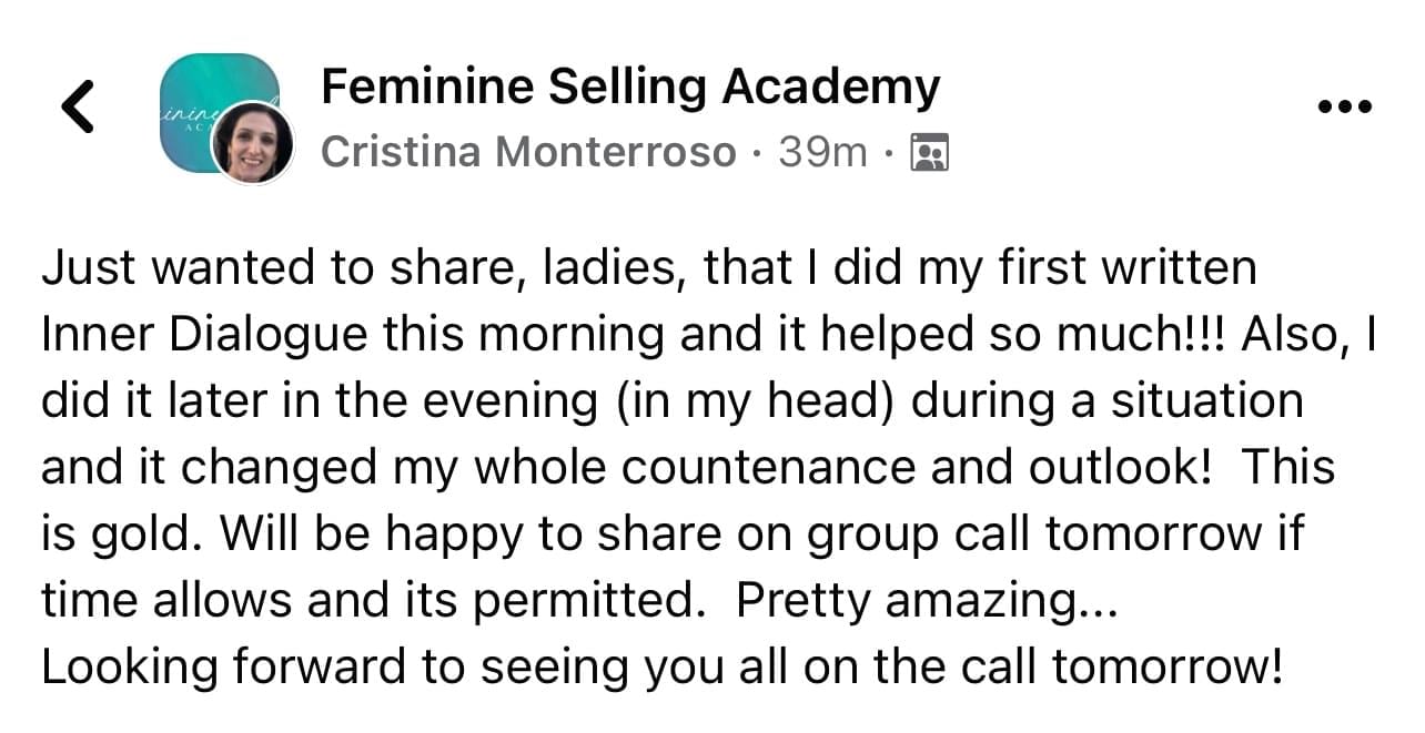 A: Module 1 is to get your mind right with sales. Your beliefs create your thoughts which create your actions, so Module 1 is learning to have a Limitless Lady mindset so you become virtually invincible to the word, “No,” which will inspire you to show up powerfully and consistently in your sales efforts.